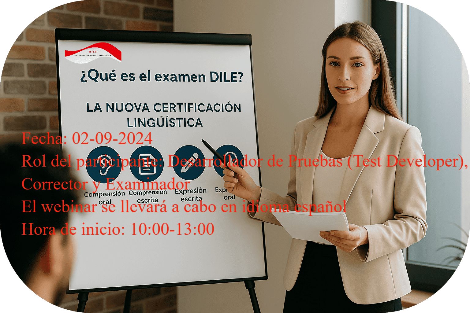 Il webinar è destinato a test developer, correttori ed esaminatori DILE, interessati a comprendere l’evoluzione delle certificazioni di spagnolo e a integrare nella propria attività strumenti e approcci innovativi. La partecipazione consente di acquisire una visione ampia e aggiornata sul settore, migliorando la capacità di orientare il proprio lavoro in un contesto globale e competitivo.