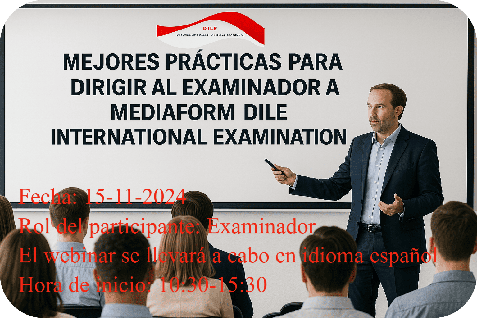 Il webinar è rivolto agli Esaminatori DILE e, più in generale, al personale coinvolto nella somministrazione e valutazione delle prove del Diploma Internacional de Lengua Española. È particolarmente indicato per chi desidera approfondire la struttura, i criteri e il protocollo operativo dell’esame DILE, comprendendo le procedure di conduzione, correzione e reporting dei risultati. La partecipazione consente di uniformare le pratiche di valutazione, garantendo coerenza, equità e qualità nel sistema certificativo Mediaform.